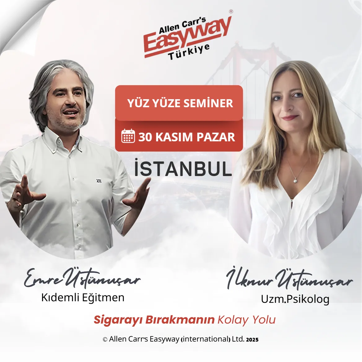 Yan etkisi olabilecek, ilaç, makine, araç kullanmak zorunda kalmadan , bilimsel başarısı kanıtlanmış, Dünya Sağlık Örgütü proje ortağı seçilen Allen Carr semineriyle kurtulun.